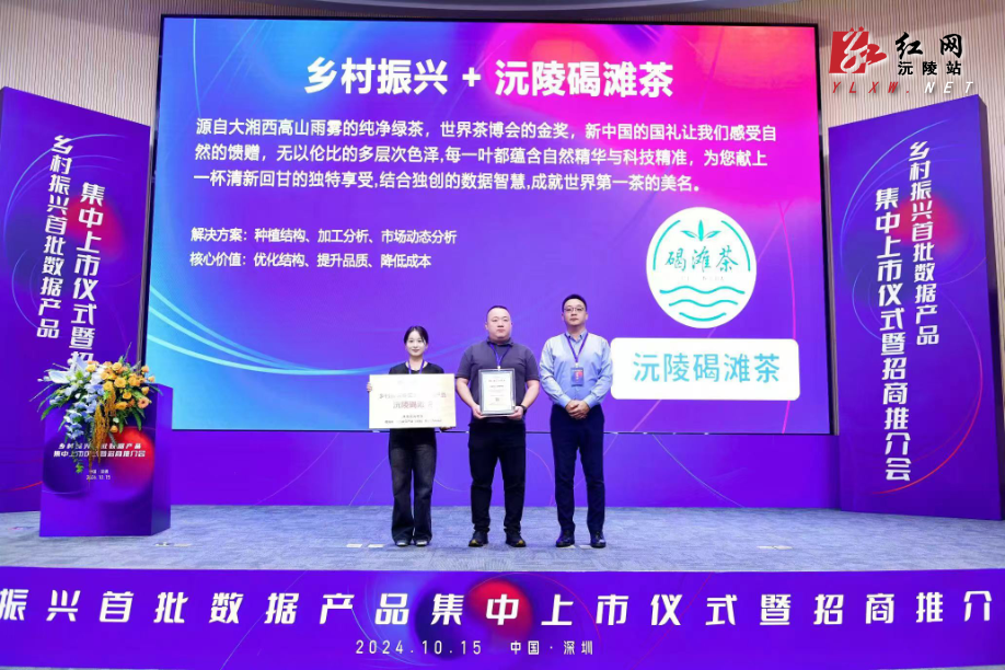 10月15日,全国乡村振兴首批数据产品集中上市仪式暨招商推介会在深圳举办,沅陵碣滩茶等9款数据产品以其独特的数据价值,成功在深圳数据交易所上市。来自10省18县(市区)的200多名代表参加此次盛会,共同见证这历史性的一刻。